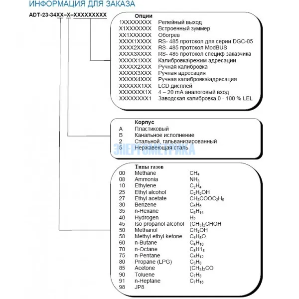 Кроме датчика паров н-гептана ADT-23-3491 Вы можете приобрести датчики других горючих газов.