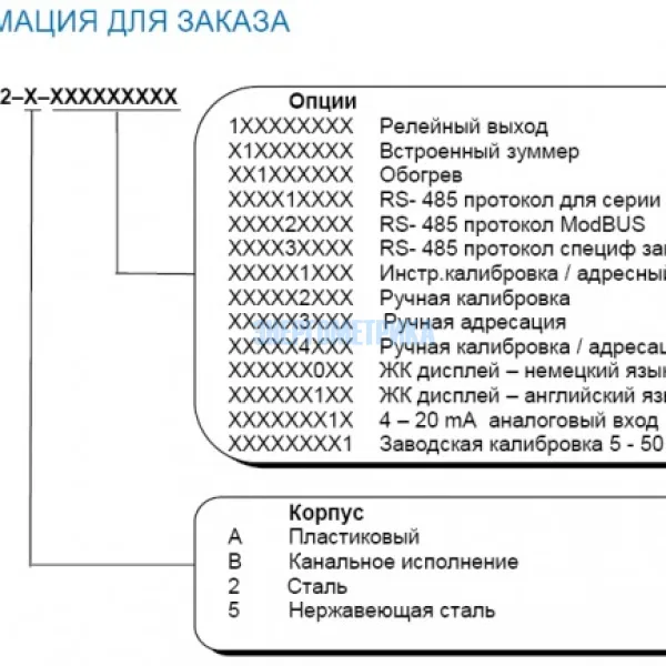 Возможно опциональное исполнение датчика с реле, позволяющими переключать пороги, релейным выходом, дополнительным входом 4-20 mA, подогревом, зуммером, дисплеем.