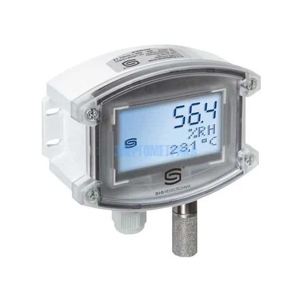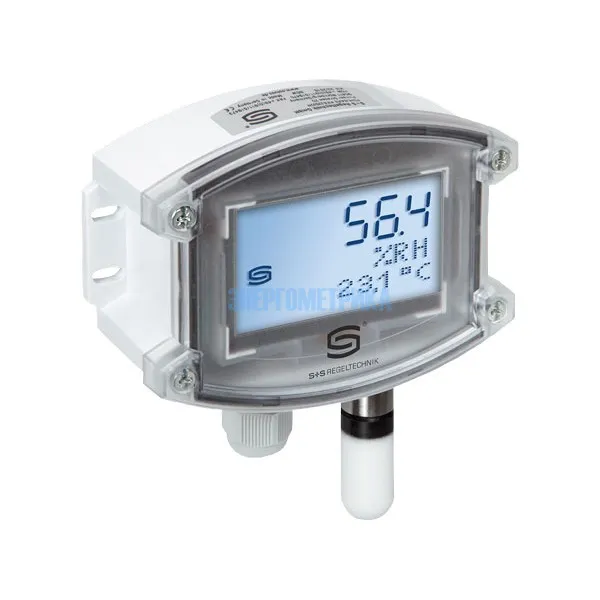 Измерительный емкостный датчик определяет уровень относительной влажности в диапазоне 0…100 %, а интегрированный термодатчик температуру в диапазоне -20 °C …+80 °C, преобразовывая результаты измерений в активный выходной сигнал 4...20 мА или 0–10 В. Чувствительный элемент защищен металлокерамическим сменным фильтром.