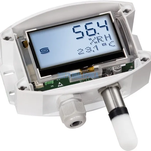 Относительная влажность (в процентах) является частным от деления парциального давления ненасыщенного водяного пара на давление насыщенного пара при заданной температуре газа. Измерительные преобразователи предназначены для точного измерения влажности. В качестве измерительного элемента для регистрации влажности используется цифровой датчик с высокой долговременной стабильностью, допускающий точную подстройку.