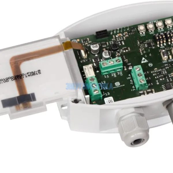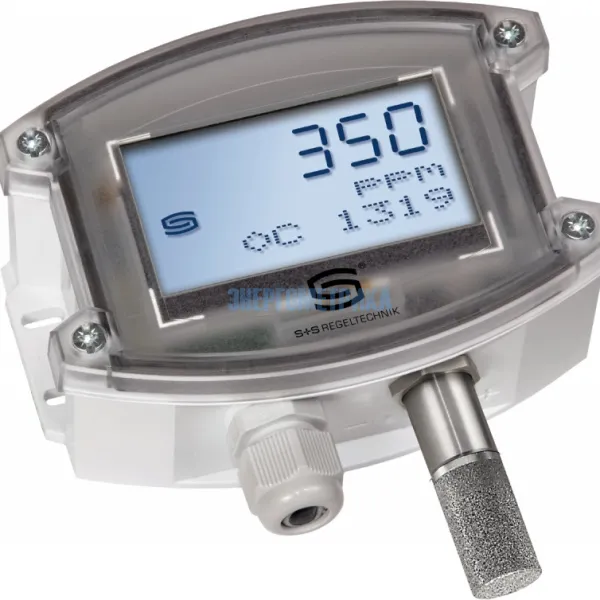 Служит для измерения содержания углекислого газа в воздухе (0...2000 млн-1 / 0...5000 млн-1), качества и чистоты воздуха с тремя уровнями чувствительности VOC (low/medium/high), температуры (−35...+80 °C) и относительной влажности воздуха (0…100 %). Измерительный преобразователь преобразует измеряемые величины в нормированный сигнал 0–10 В или 4...20 мА (можно переключить).