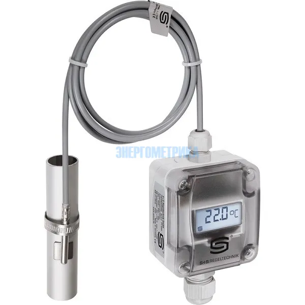 ALTM2 - калибруемый накладной измерительный датчик температуры для труб S plus S Regeltechnik GmbH, с дистанционным датчиком, аналоговым выходом, стяжной лентой и клеммным коробчатым корпусом из пластика с высокой ударной вязкостью, крышкой корпуса с быстрозаворачиваемыми винтами, на выбор – с дисплеем или без дисплея.