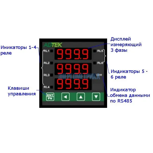 Позволяет выводить на дисплей 3 фазы напряжения или тока с помощью кнопок расположенных на передней панели.