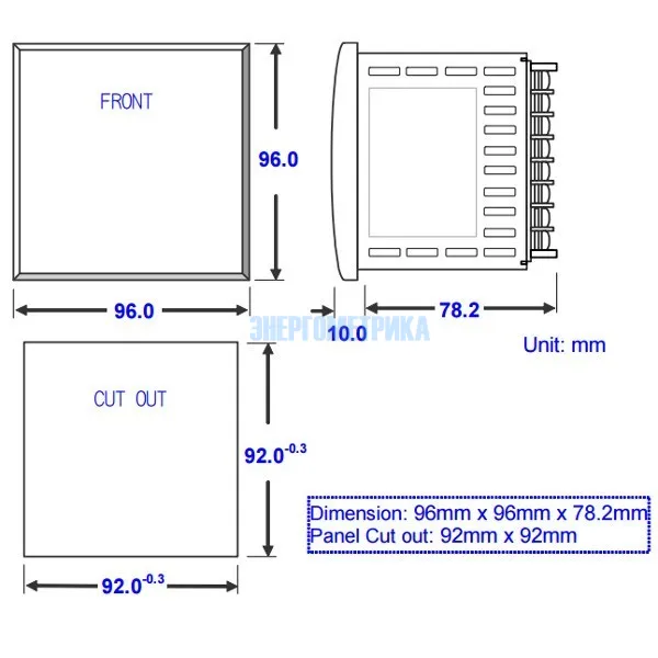 | Вырез в панели | 92mm(ширина) x 92mm(высота) | ||||