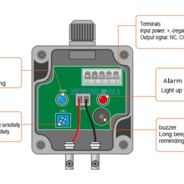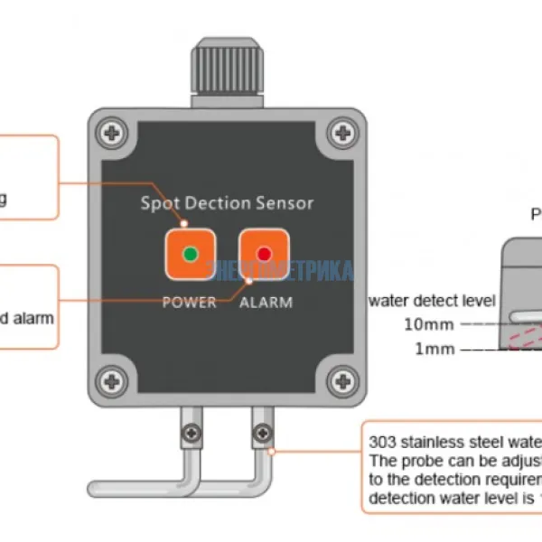 EnergoM-3001-LS прост в установке и не имеет внутри регулируемых деталей. На датчике необходимо установить только высоту обнаружения воды.