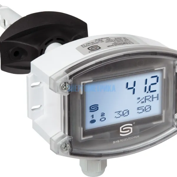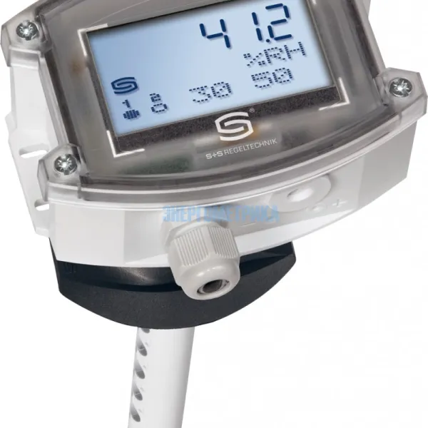 Электронный канальный гигростат и/или термостат HYGRASREG® KHT-30 с аналоговым и двумя релейными выходами, настраиваемыми порогами переключения и дисплеем для отображения измеренной влажности и/или измеренной температуры (класс точности ± 2,0 % отн. влажности).