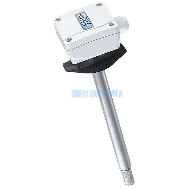 Корпус канального датчика температуры и влажности KMVTF выполнен из пластика и полиамида и соответствует классу защиты IP65. Крышка корпуса фиксируется быстрозакручивающимися винтами. Возможна открытая (наружная) или канальная установка датчика. Опционно возможно оснащение датчика KMVTF серии HYGRASGARD® однострочным дисплеем со сменяющейся индикацией.