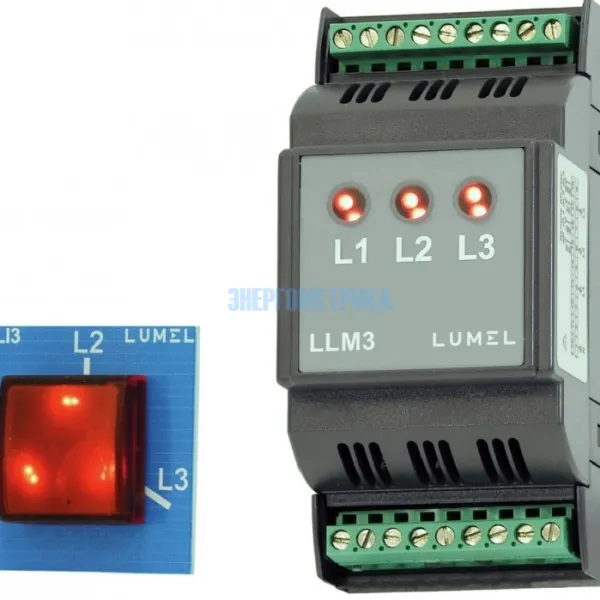 LLM3 - индикатор чередования фаз предназначен для контроля и индикации наличия напряжения в трёхфазной сети. Каждой фазе соответствует свой светодиодный индикатор красного цвета с маркировкой L1, L2, L3. При пропадании напряжения по какой-либо фазе соответствующий светодиод гаснет.