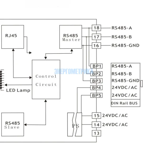 Сетевая связь осуществляется по стандартному протоколу RS-485 Modbus RTU. Источники питания переменного и постоянного тока поддерживаются неполяризованными клеммами с диодной связью.