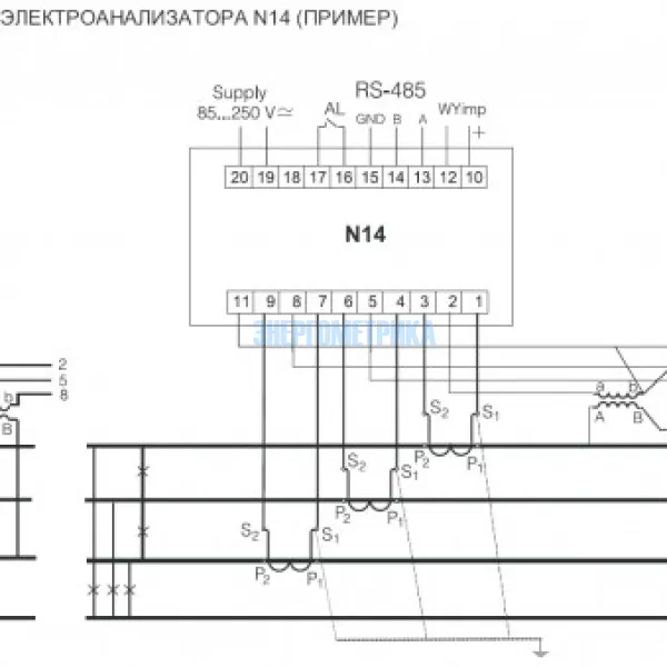 Значение каждой измеренной величины может быть передано в управляющую систему через интерфейс RS-485.