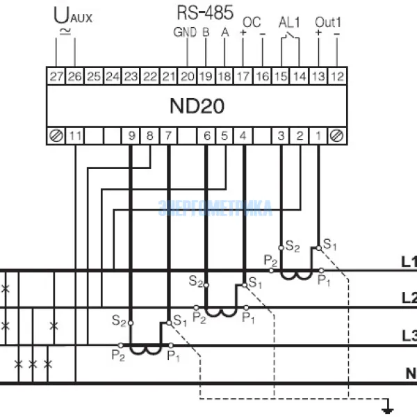 | ND20 - Анализатор параметров электрической сети с интерфейсом RS-485. Выходы |