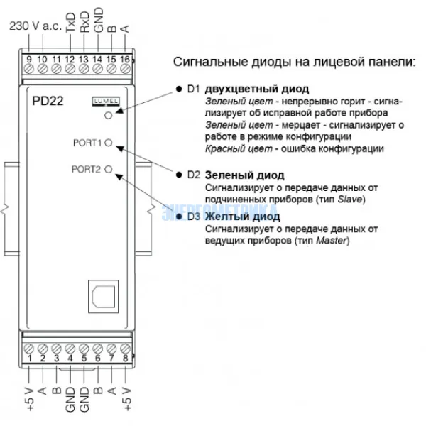 Электронный регистратор, накопитель данных PD22 предназначен для телеметрических компьютерных систем как модуль памяти для архивирования данных получаемых от других устройств с помощью интерфейса RS485 (протокол MODBUS RTU).