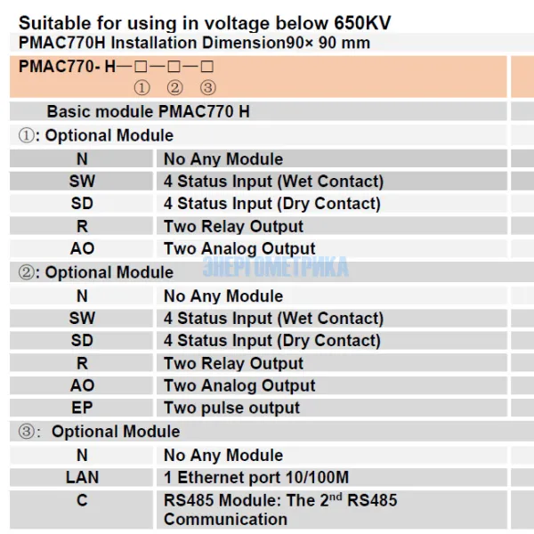 Примечание: Максимум один измеритель мощности. Работайте с 3-мя дополнительными модулями. SW/ SD/ R/ AO можно выбрать 2шт для одного устройства.