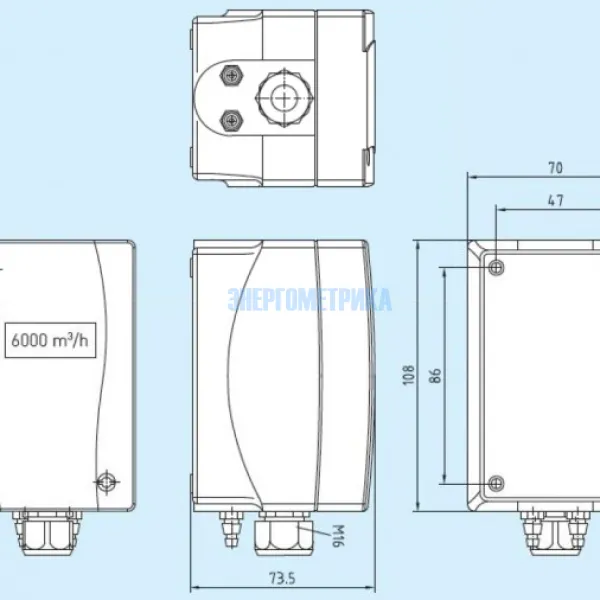 Коэффициент преобразования настраивается в пределах 1...3000. Индикация единиц измерения выбирается из нескольких вариантов: м3/с, м3/мин, м3/ч, л/с, л/мин, л/ч. На подсвечиваемом дисплее отображаются измеряемая величина, состояние реле и факт выхода измеряемой величины за пределы диапазона измерения.