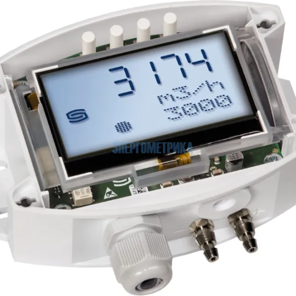 | Комплектация | дисплей с подсветкой, трехстрочный, вырез ок. 70 x 40 мм (ширина х высота), для индикации объемного расхода, разности давлений, степени загрязнения или уровня наполнения, а также для настройки порога переключения, коэффициента K, границ диапазона измерения и для прочих настроек | ||