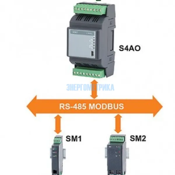 S4AO предназначен для преобразования цифровых данных, передаваемых по шине RS-485 с помощью протокола Modbus, в стандартные сигналы: токовые или напряжения.